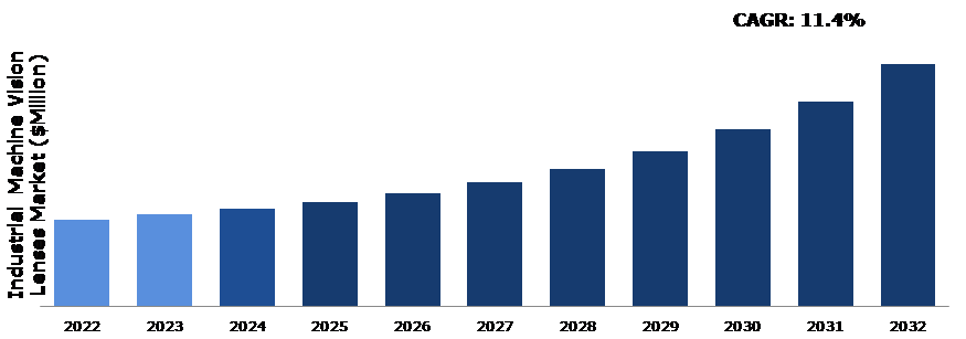 The Global Industrial Machine Vision Lenses Market Size was $7,111.60 million in 2022 and is predicted to grow with a CAGR of 11.4%, by generating a revenue of $19,939.40 million by 2032.