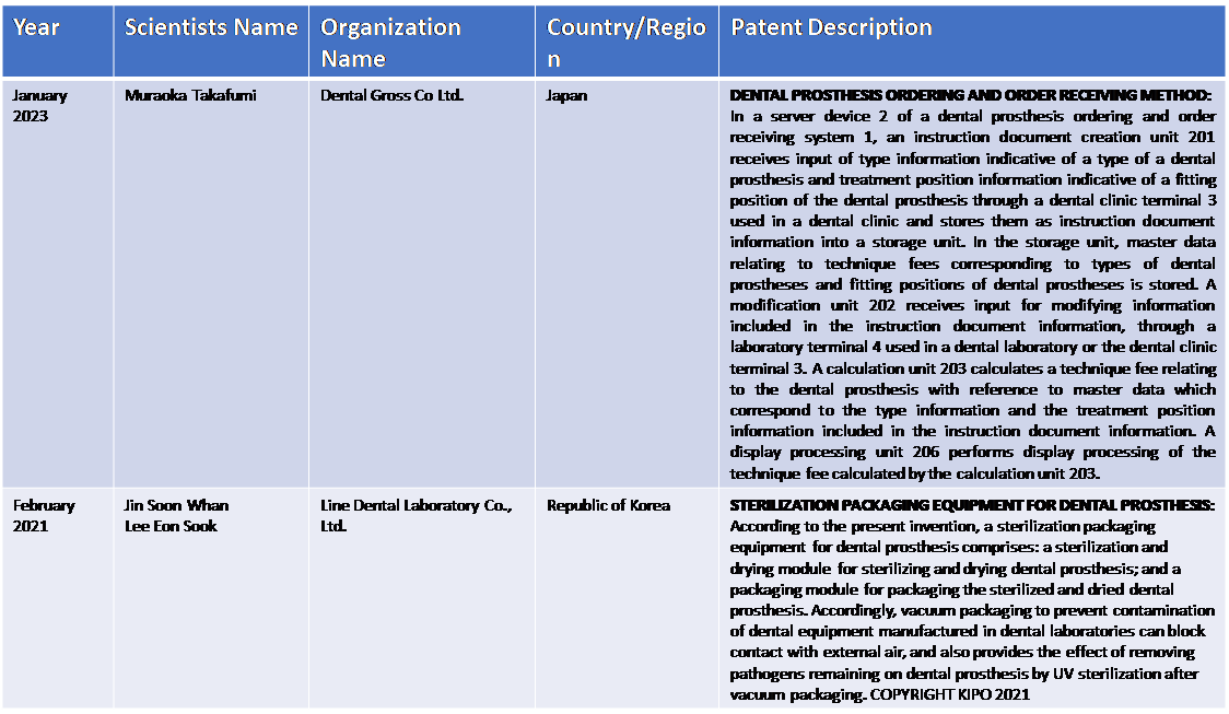 Dental Lab Patent Analysis