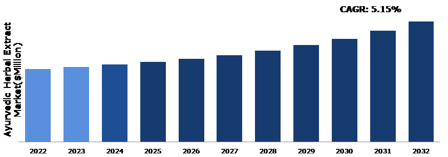 A. The global ayurvedic herbal extract market size was over $41,501.3 million in 2022 and is projected to reach $68,564.3 million by 2032.