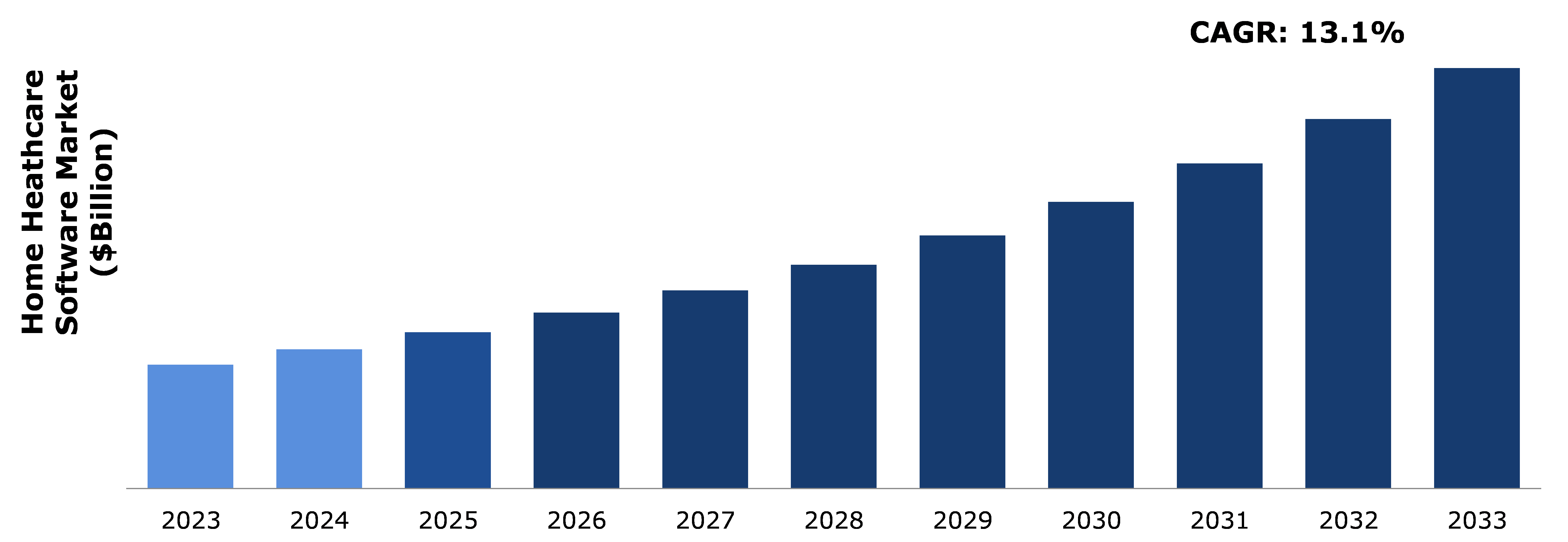 The home healthcare software market was valued at $3.6 billion in 2023 and is estimated to reach $12.1 billion by 2033, exhibiting a CAGR of 13.1% from 2024 to 2033.
