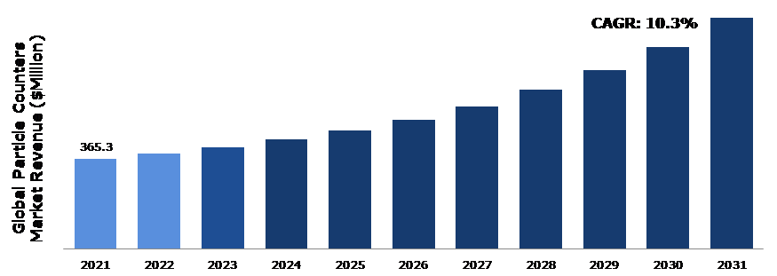 A. The size of the global particle counters market was over $365.3 million in 2021 and is projected to reach $936.8 million by 2031.