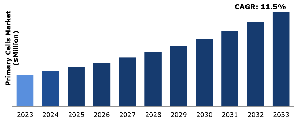 - This report provides a quantitative analysis of the primary cells market segments, current trends, estimations, and dynamics of the primary cells market analysis from 2023 to 2033 to identify the prevailing primary cells market opportunities.