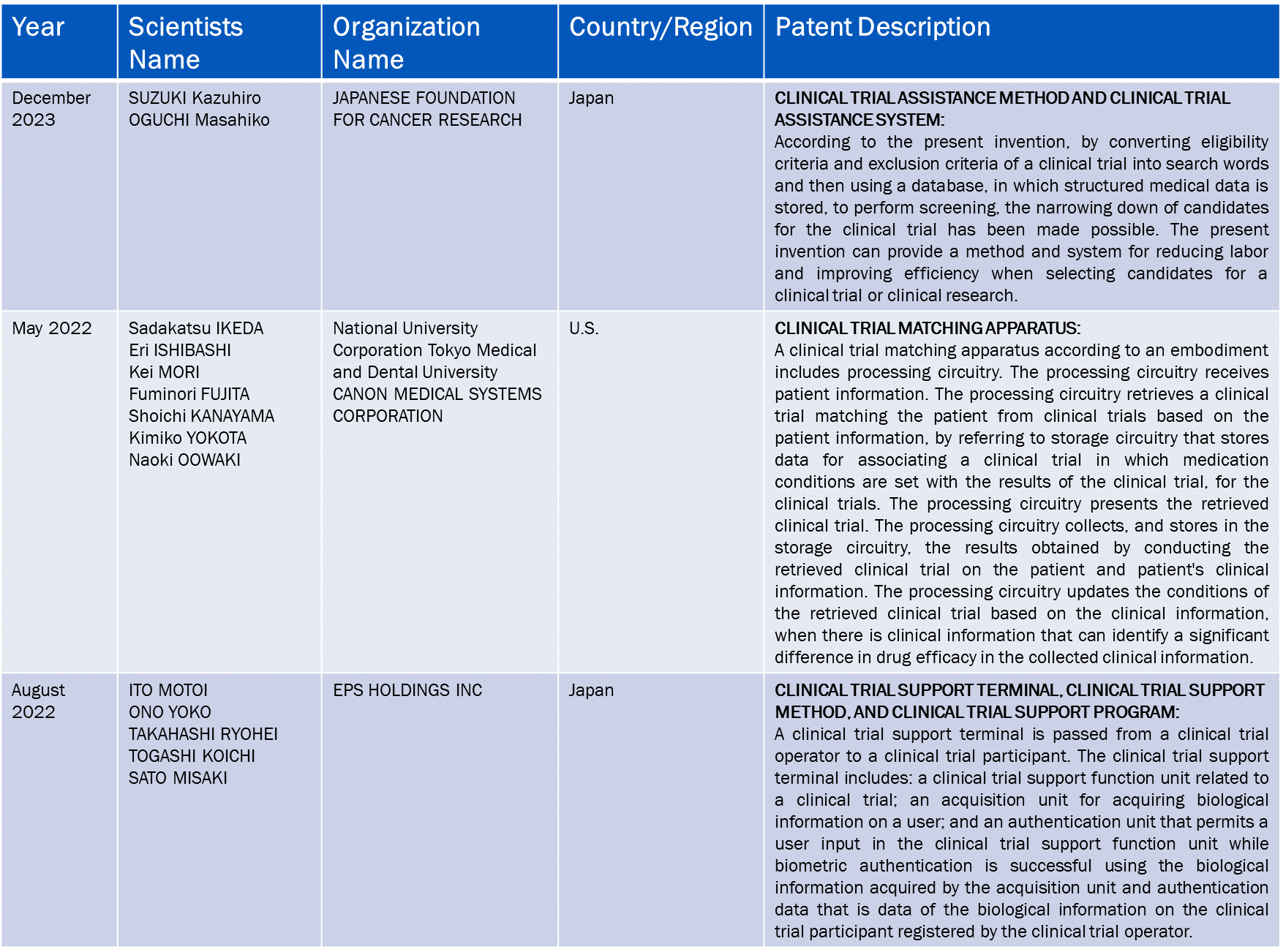 4.4.2. Patent matrix