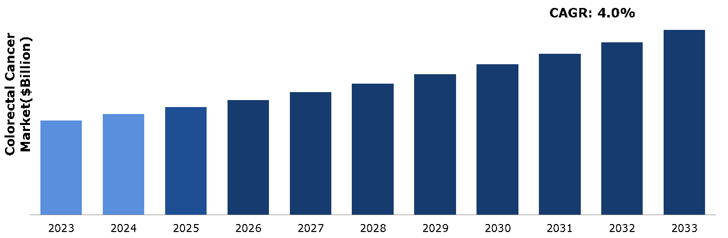 The colorectal cancer market was valued at $21.03 billion in 2023 and is estimated to reach $30.95 billion by 2033, exhibiting a CAGR of 4.0% from 2024 to 2033.