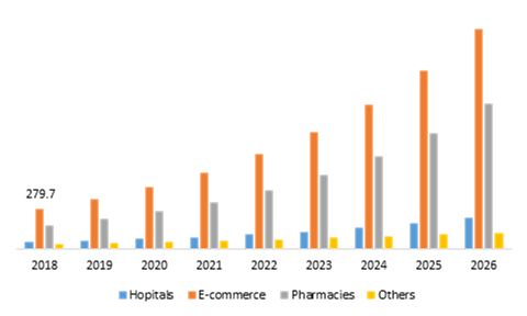The Ecommerce distribution channel segment has become one of the most commonly used channels for the sales of tubeless insulin pumps. The revenue generated by the product sales through this channel in 2018 was $279.7 million and is estimated to witness growth at more than 23.5% CAGR till 2026. The consumers are highly attracted to the economic benefits offered by these channels and are preferring over purchases through the traditional offline channels.