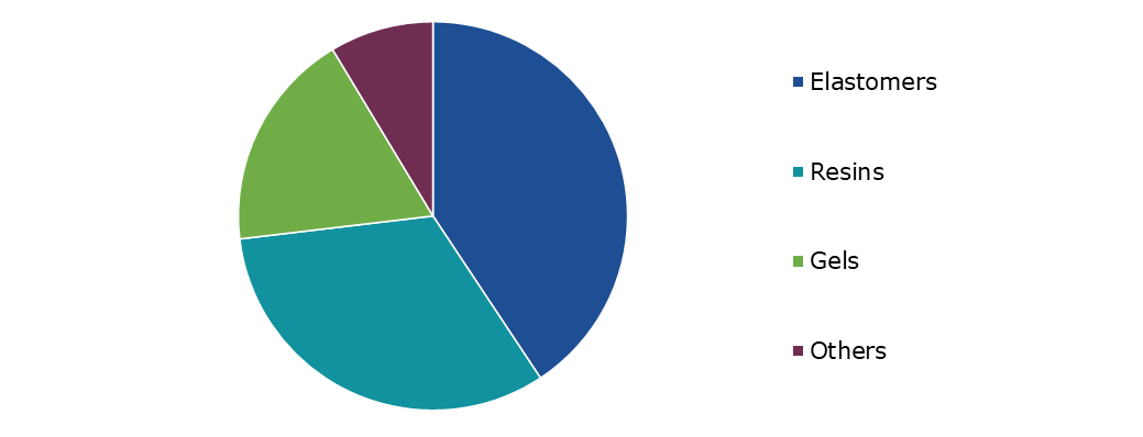 The elastomers sub-segment accounted for the highest market share in 2022. Silicone elastomers are widely used in automotive applications for sealing and gasketing purposes. They provide excellent resistance to extreme temperatures, fluids, and chemicals, making them ideal for creating reliable seals in engines, transmissions, and other automotive components. Elastomers offers the advantage of absorbing sounds, dampen vibrations, and noise. For this reason, they find application in engine mounts, suspension bushings, and body mounts to reduce vibrations and improve overall ride comfort. Furthermore, elastomers offer a high degree of design flexibility, enabling the production of complex shapes and sizes. This property is particularly valuable in automotive applications, where components often require customized shapes to fit specific spaces and perform specific functions. Elastomers are utilized for thermal management in automotive applications. They are used in seals, gaskets, and thermal interface materials to provide effective heat dissipation and insulation, contributing to the overall efficiency and reliability of automotive systems.