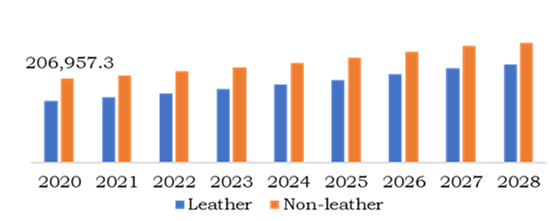 Based on material, the analysis has been divided into leather and non-leather. Out of these, the non-leather sub-segment is projected to be the most dominant and fastest growing sub-segment in the global market.