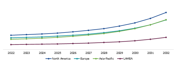 Global LED Mask Market Size & Forecast, by Region, 2022-2032 ($Million)