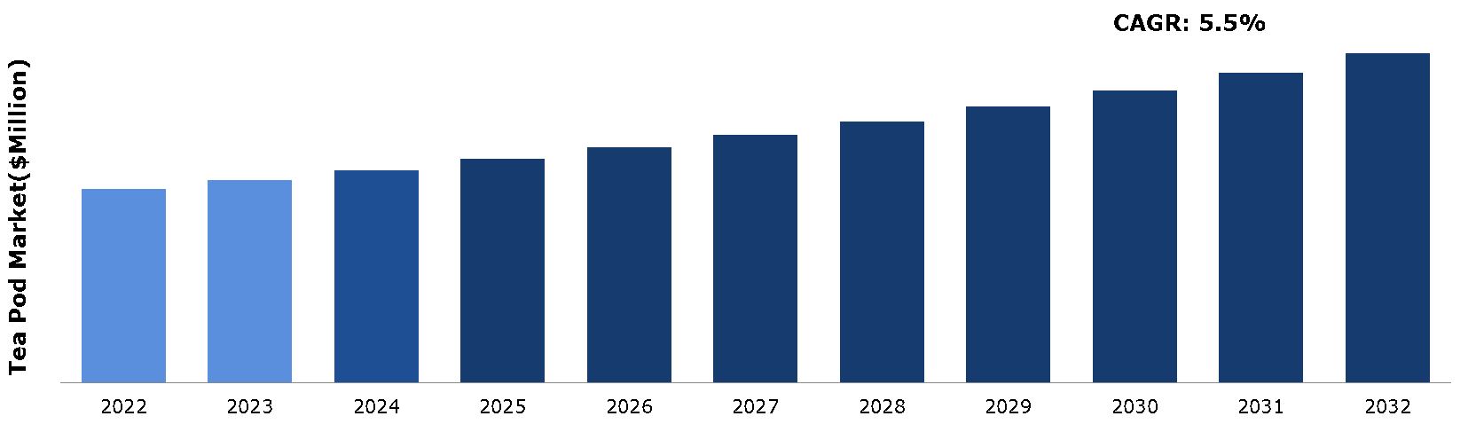 The global tea pod market size was $4,575.0 million in 2022 and is predicted to grow with a CAGR of 5.5%, by generating a revenue of $7,790.4 million by 2032.