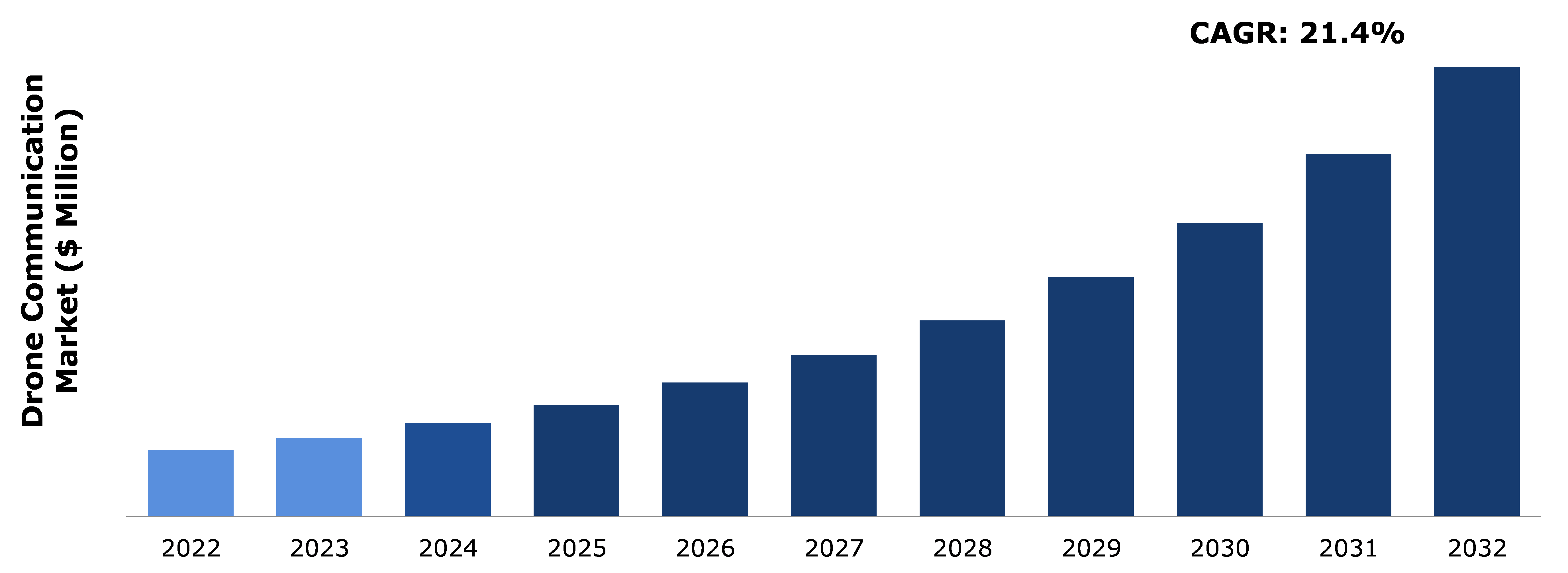 The drone communication industry is driven by several factors that highlight the significance of Unmanned Aerial Vehicles (UAVs) in various fields, particularly in military settings. This growth is majorly owing to growing security concerns and vulnerabilities of UAVs to security attacks. For instance, the vulnerability of UAVs to security attacks, including jamming, information leakage, and spoofing, highlights the critical need for robust security protocols. Security concerns drive the development and implementation of secure communication systems to protect against unauthorized access, malicious control, and other potential threats. In addition, in the military scenario, addressing security gaps in UAV communication becomes imperative.