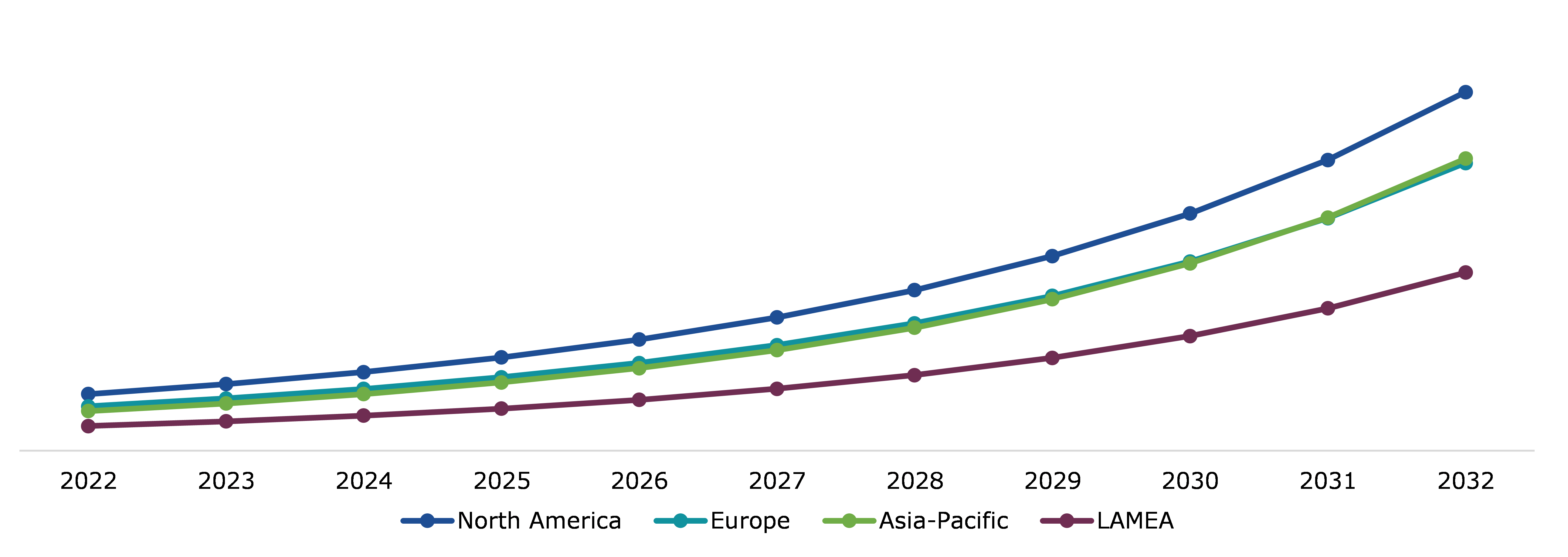 Global Drone Communication Market Size & Forecast, by Region, 2022-2032 ($Million)