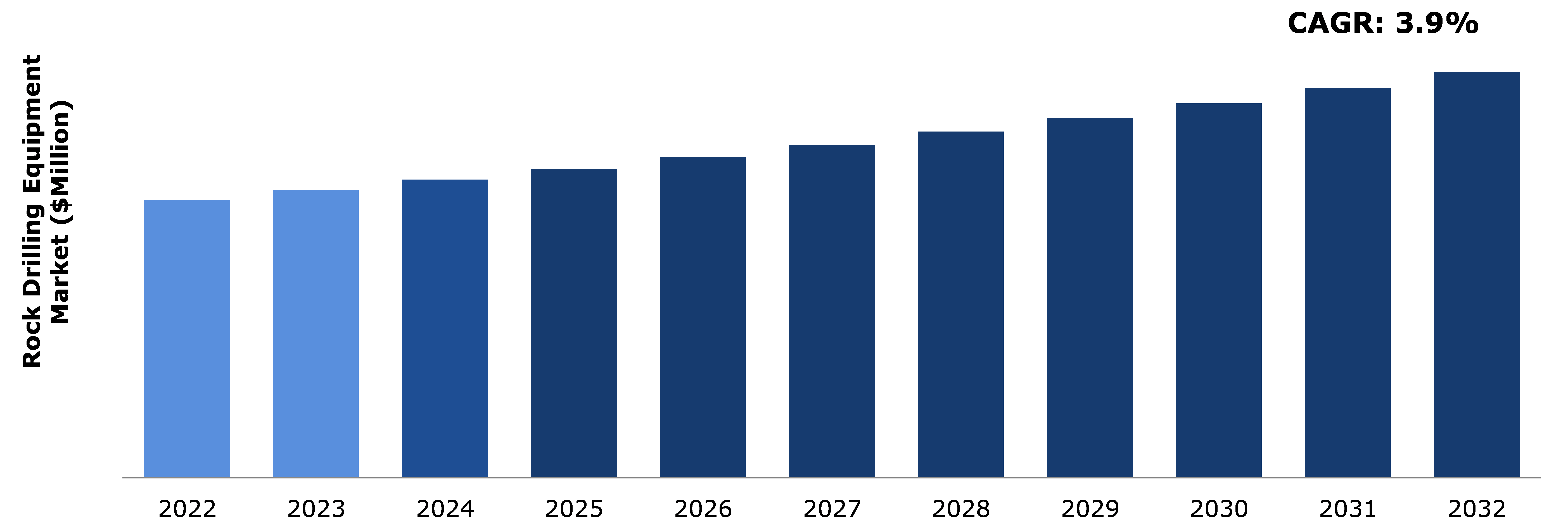 A. The size of the global rock drilling equipment market was $2,339.1 million in 2022 and is projected to reach $3,419.2 million by 2032.